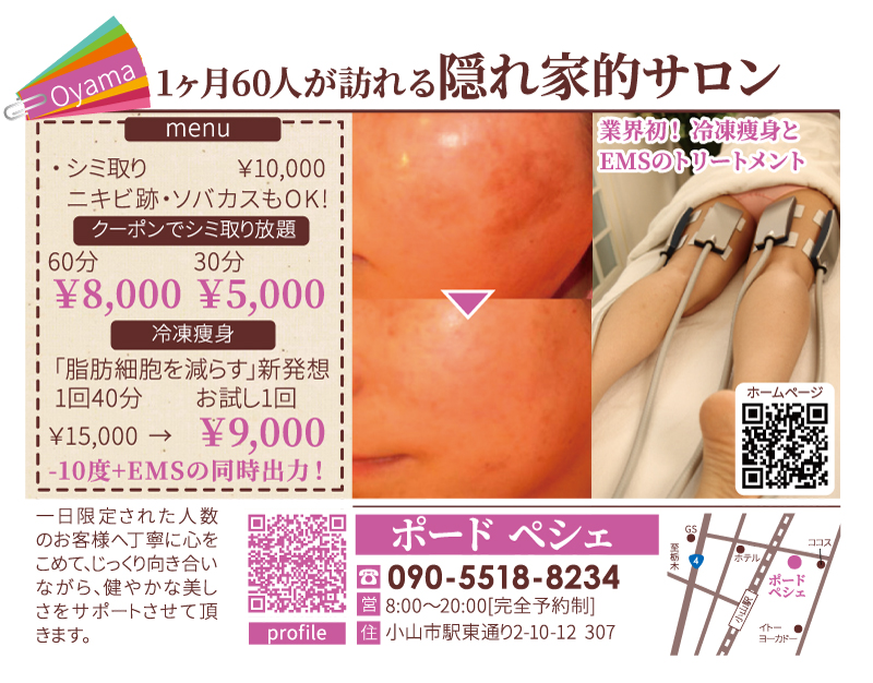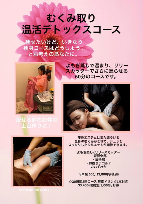 「栃木市ドットコムを見た」とおっしゃっていただくと。初回施術がフェイシャルメニュー(整顔、エイジングケア)¥500-OFF!ボディメニューもしくはセットメニューを¥1000-OFF!とさせて頂きます。